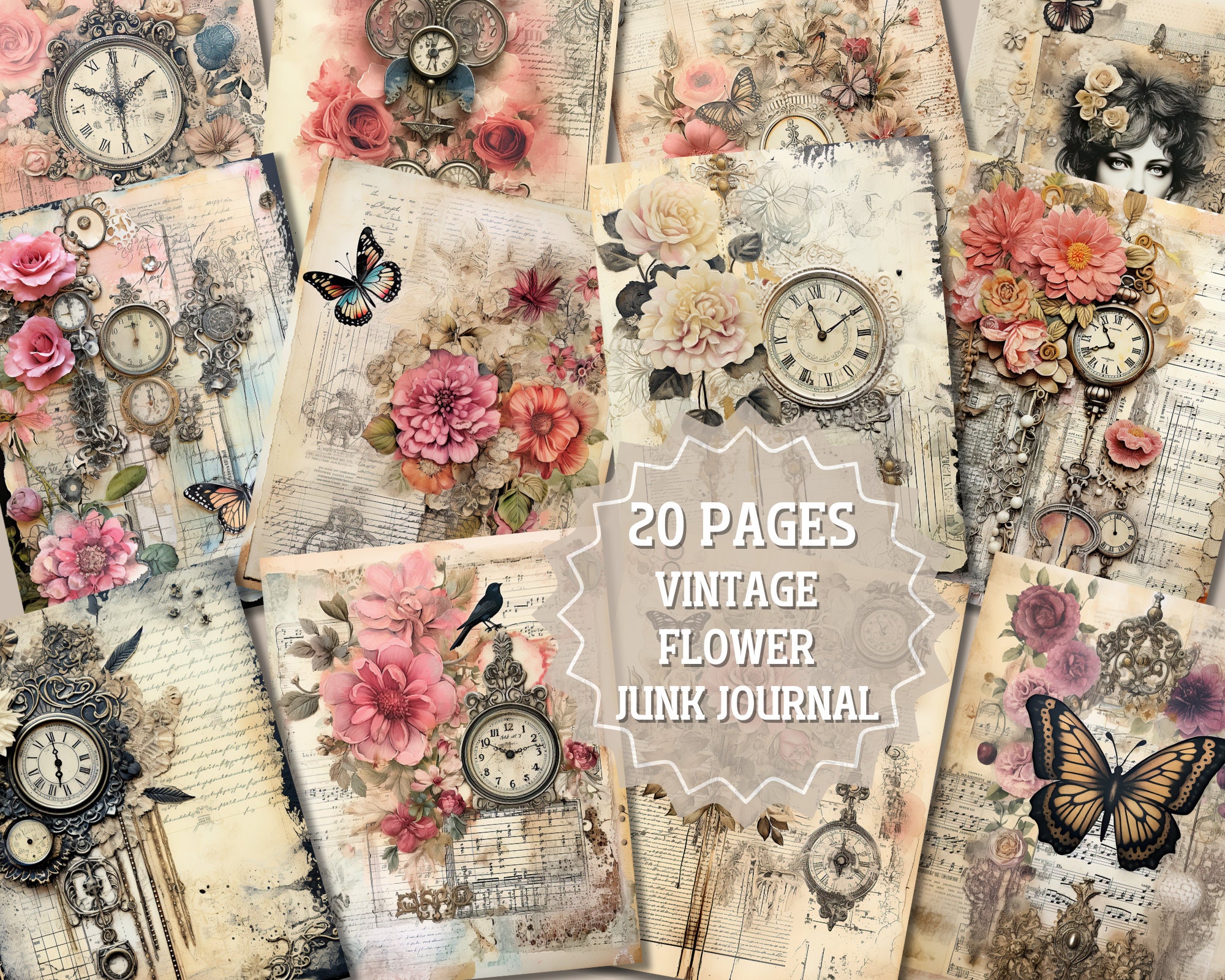 ジャンクジャーナル ビンテージフラワー 11 x 背景ページ ヴィンテージ ビクトリアン フローラル セット
